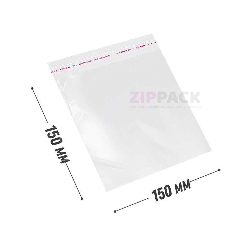 БОПП ПАКЕТ С КЛЕЕВЫМ КЛАПАНОМ 150х150+30 мм / 25 мкм