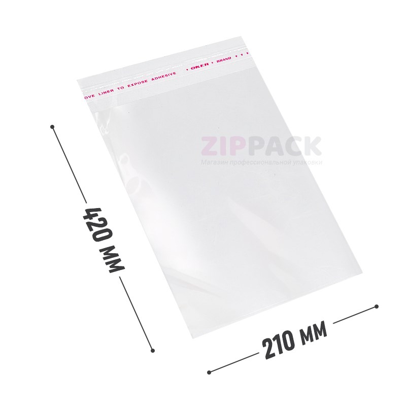 БОПП ПАКЕТ С КЛЕЕВЫМ КЛАПАНОМ 210х420+30 мм | бопп 25 мкм
