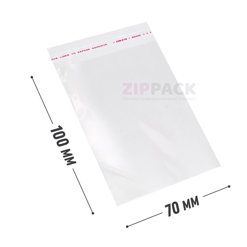 БОПП ПАКЕТ С КЛЕЕВЫМ КЛАПАНОМ 70х100+30 мм / 25 мкм