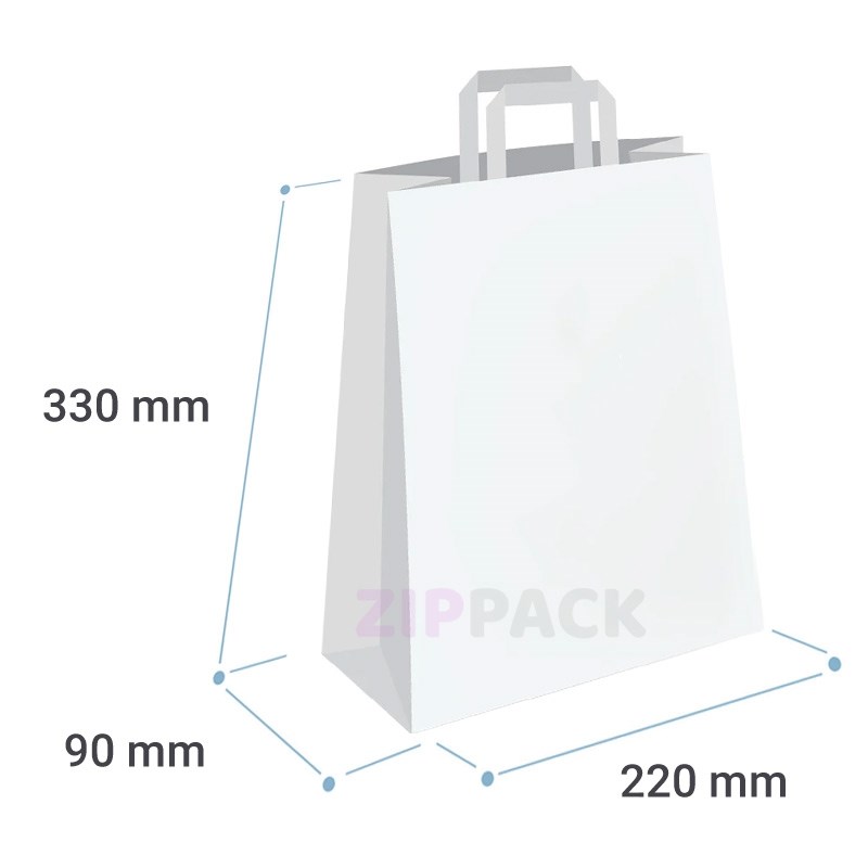 БЕЛЫЙ БУМАЖНЫЙ ПАКЕТ 220x90х320 мм ПЛОСКИЕ РУЧКИ | Крафт 70 гр./м2