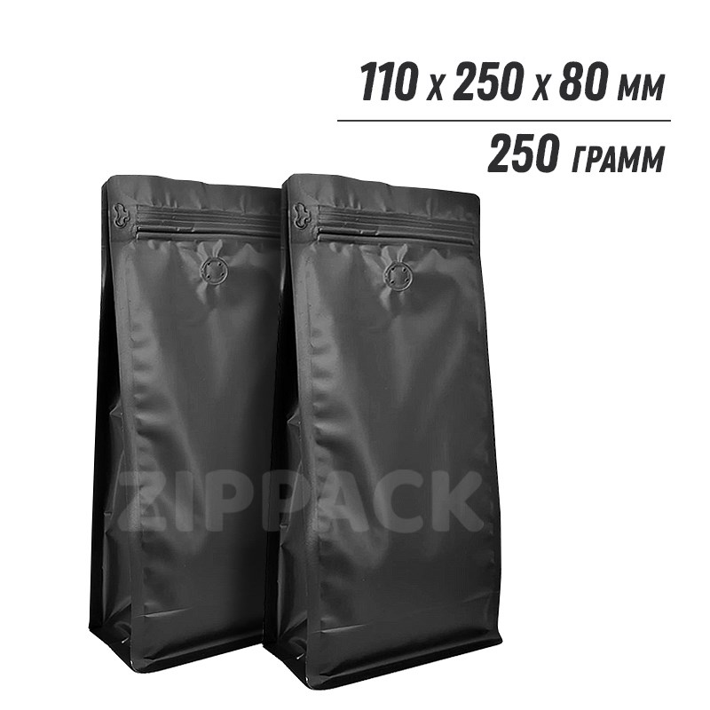 ЧЕРНЫЙ ПАКЕТ 110+80х250 мм | ДЛЯ 0.25 КГ КОФЕ | с клапаном дегазации