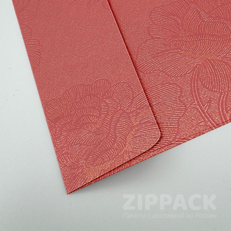 Конверт красный перламутр С6 114×162 мм — цветочный рельефный рисунок