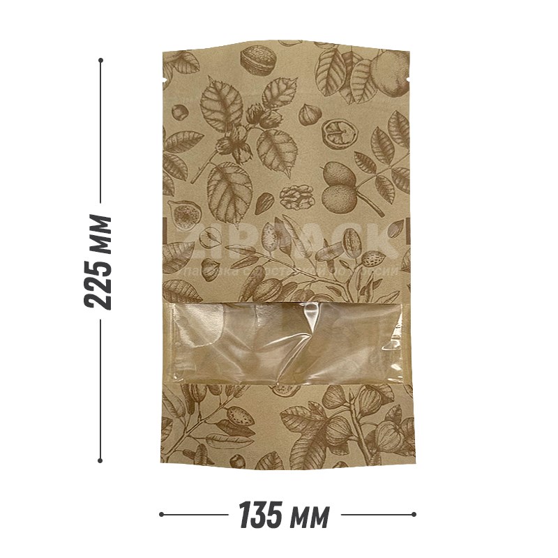 Крафтовый дой-пак с принтом 135×225 мм с ZIP-застёжкой — стильная упаковка для натуральной продукции: орешков и сухофруктов. Крафтовая основа подчёркивает экологичность фасовки, а нанесённый принт создаёт эффектное визуальное оформление для розничной выкладки и онлайн-продаж.