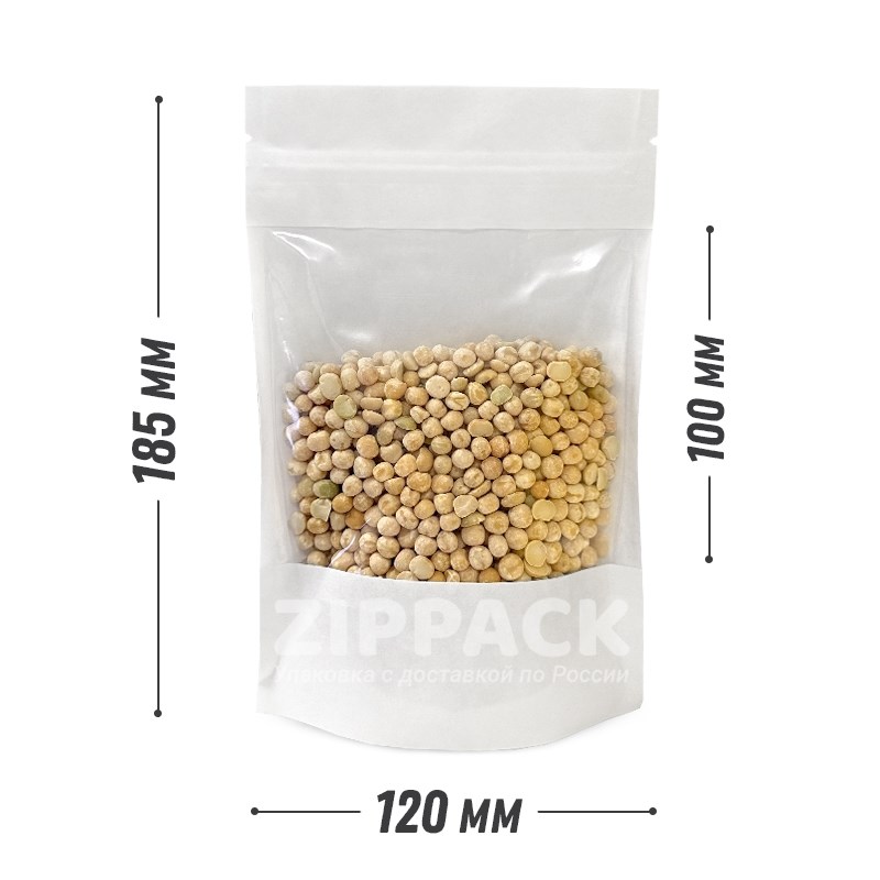 КРАФТ ДОЙ-ПАКЕТ 120х185 мм С ПРОЗРАЧНОЙ СТОРОНОЙ