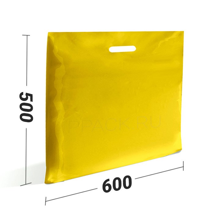 ЖЕЛТЫЙ ПОЛИЭТИЛЕНОВЫЙ ПАКЕТ 600х500 мм | 70 мкм| С вырубными ручками и закладным дном